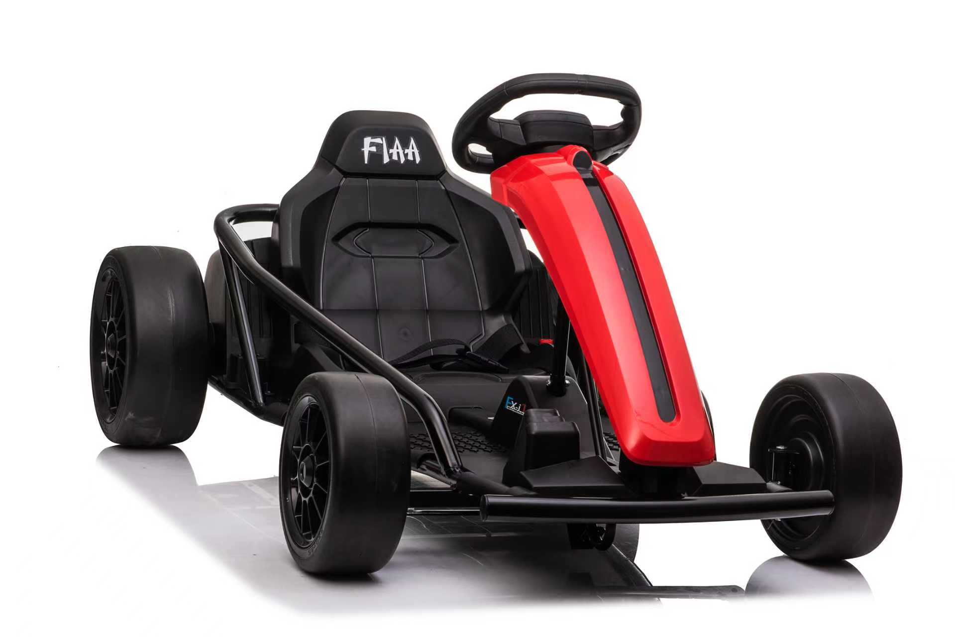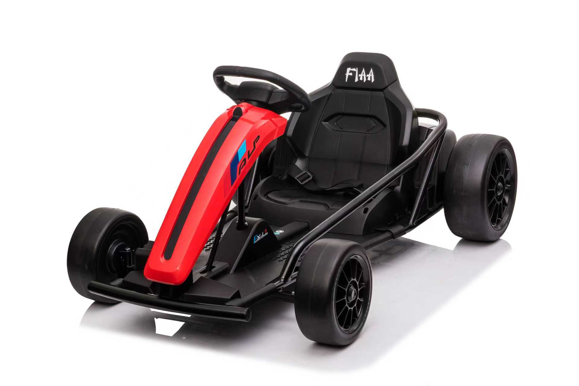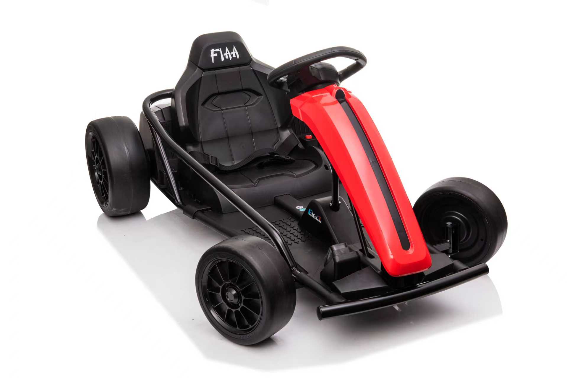 Safety is a priority with this ride-on drift kart.